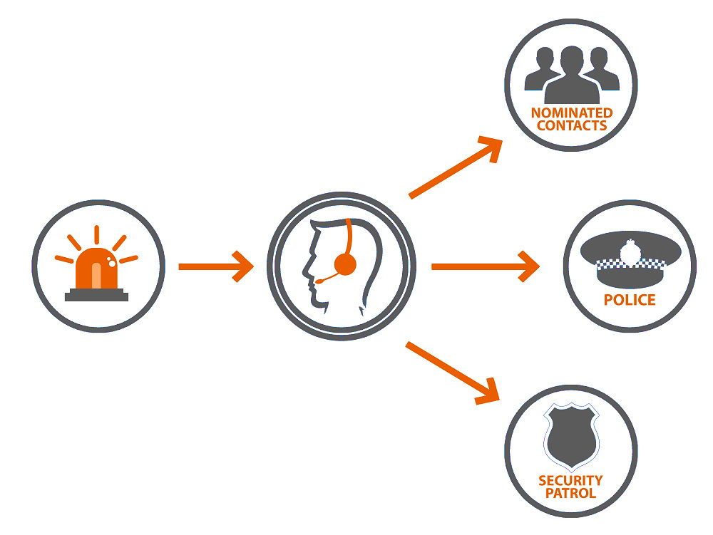 In essence, 'back-to-base' alarm monitoring is an alarm system that communicates with a monitoring centre. The security system is programmed to contact a staffed monitoring centre when an alarm is triggered, and immediately action a pre-determined response plan that has been agreed with the owner or manager of the system.